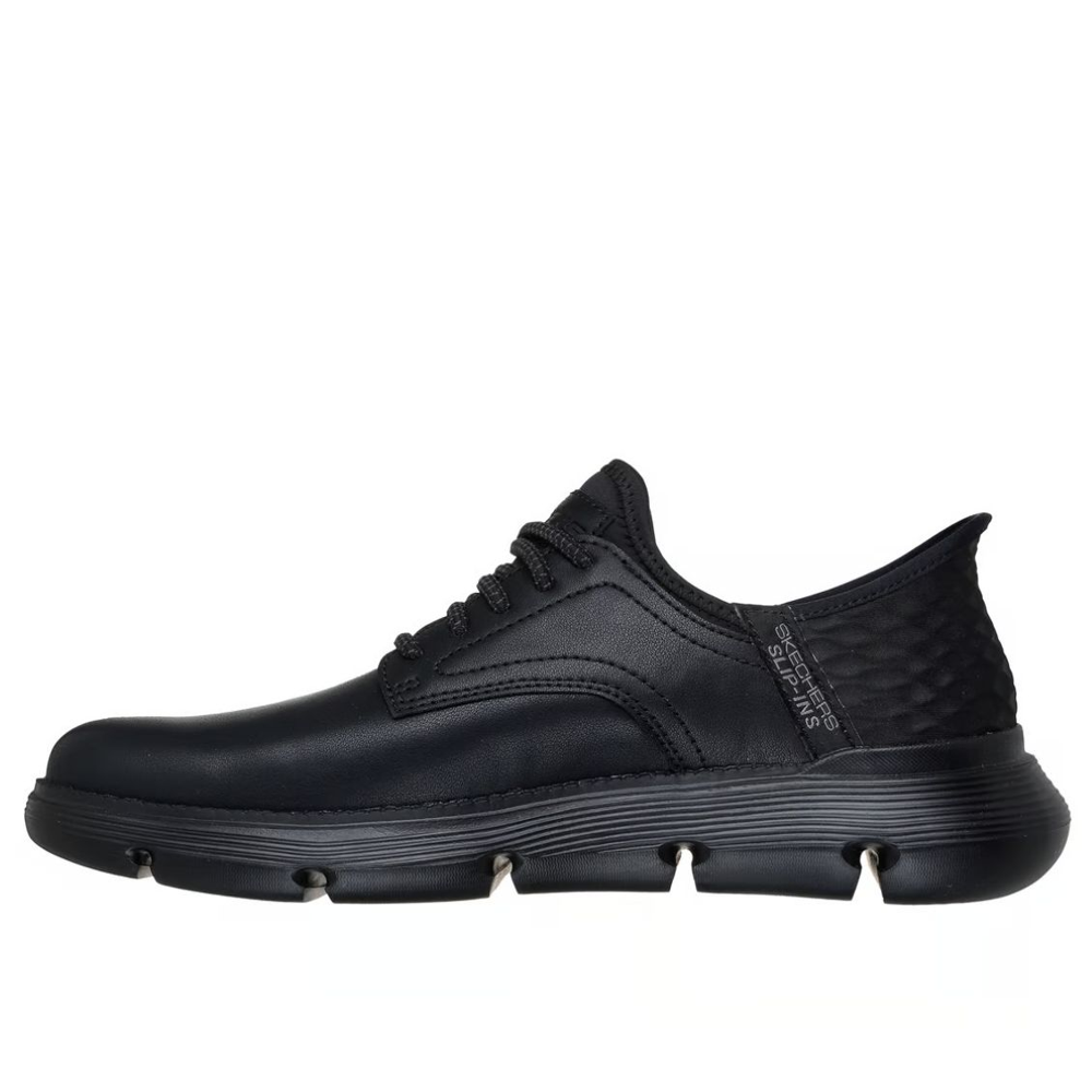 Master your efficiency with a comfortable business casual look wearing Skechers Hands Free Slip-ins®: Garza - Gervin. This TOUCHLESS FIT® Oxford style features a smooth leather upper with stretch laces, a Skechers Slip-ins® molded heel panel, a charcoal-infused Skechers Air-Cooled Memory Foam® insole, and a Skechers Goga Mat Arch™ for added support.