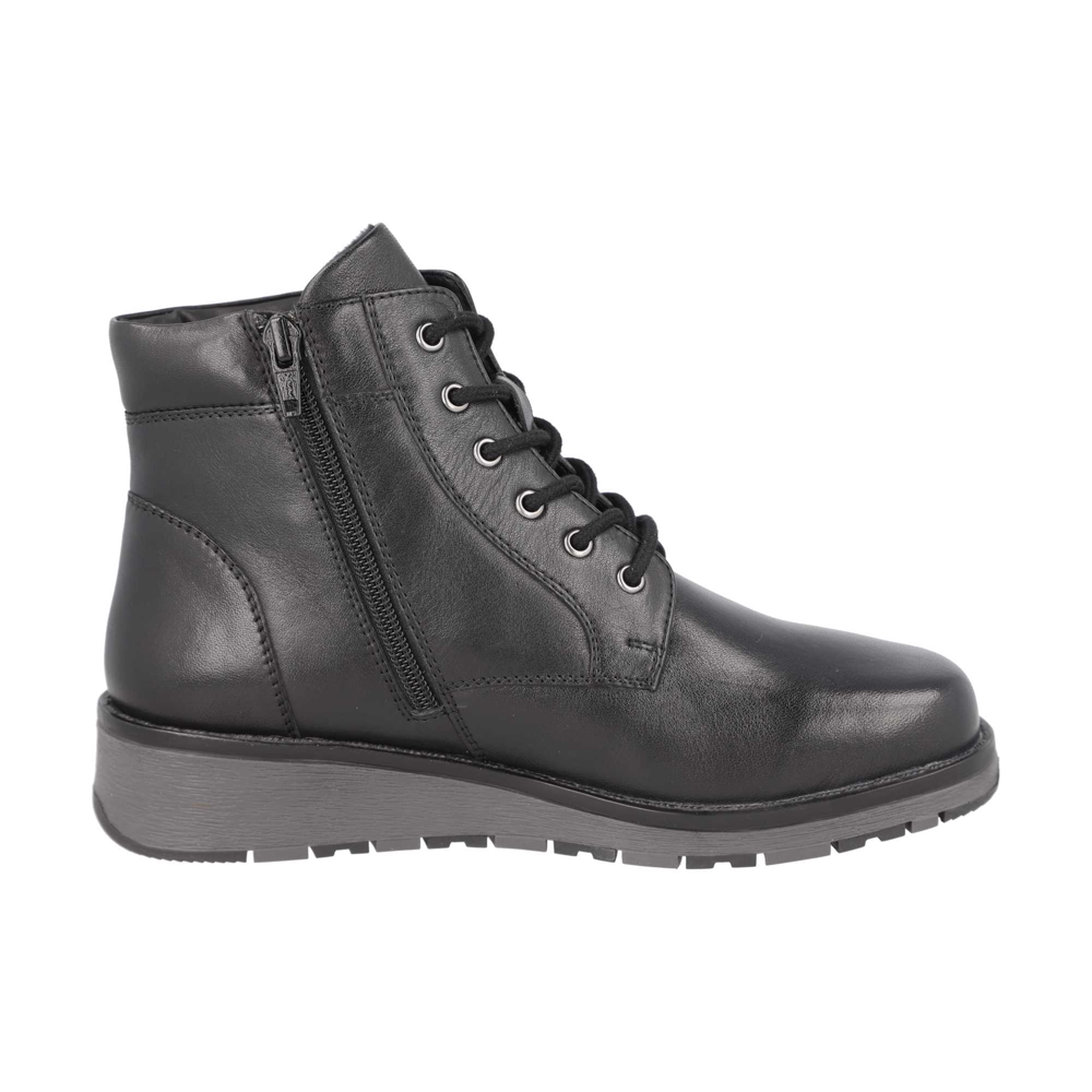 Leather lace up ankle boot with side zip for easy access and removal with no need to undo lace once it has been set. Asymmetric toe shape follows the foot shape for a more comfortable fit allowing all your toes to spread naturally.