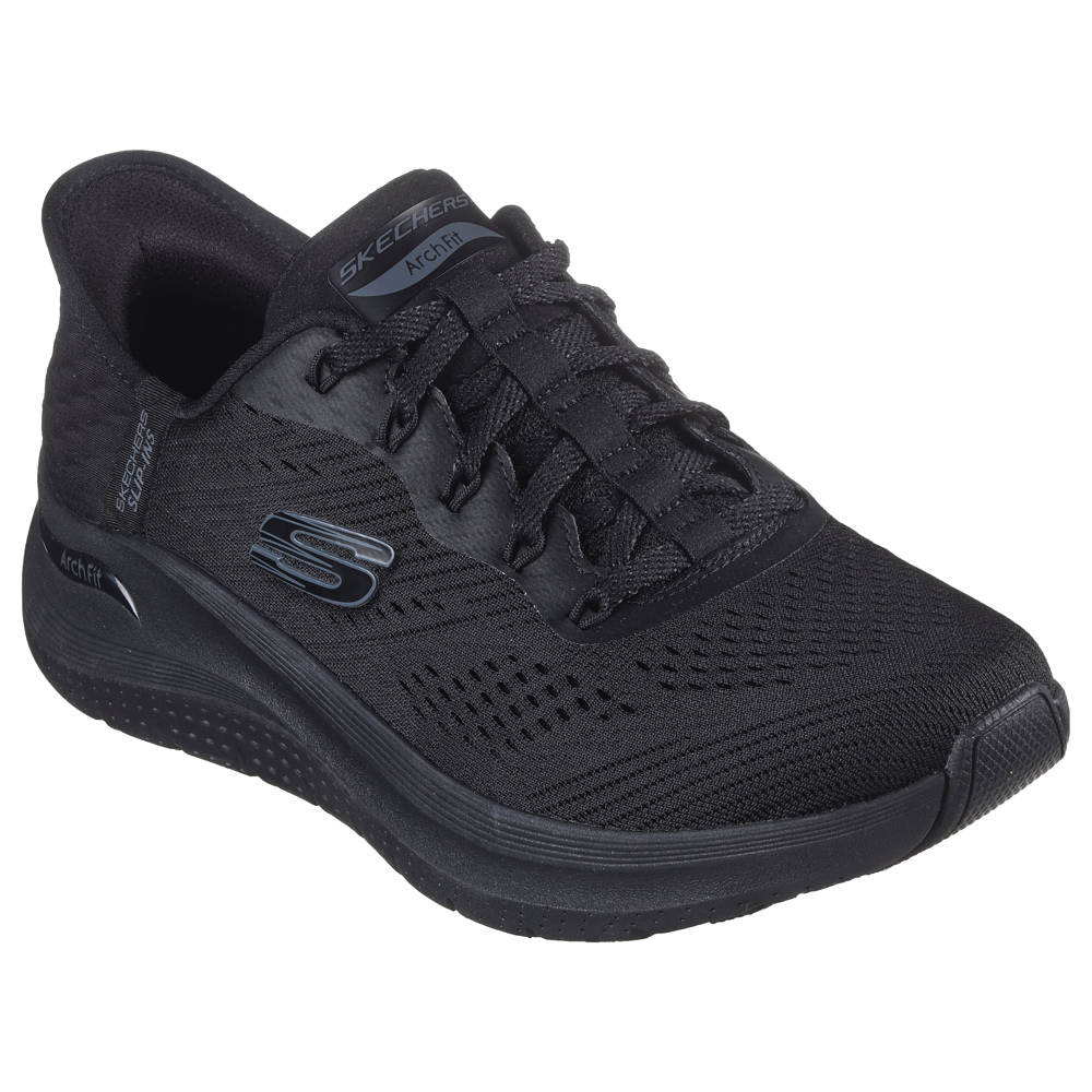 Arch Fit Stability™ Step up your routine with easygoing comfort wearing Skechers Slip-ins®: Arch Fit® 2.0 - Easy Chic. Designed with our Heel Pillow®, this laced slip-on style features an engineered mesh upper with synthetic hot melt overlays and removable Arch Fit® insoles.