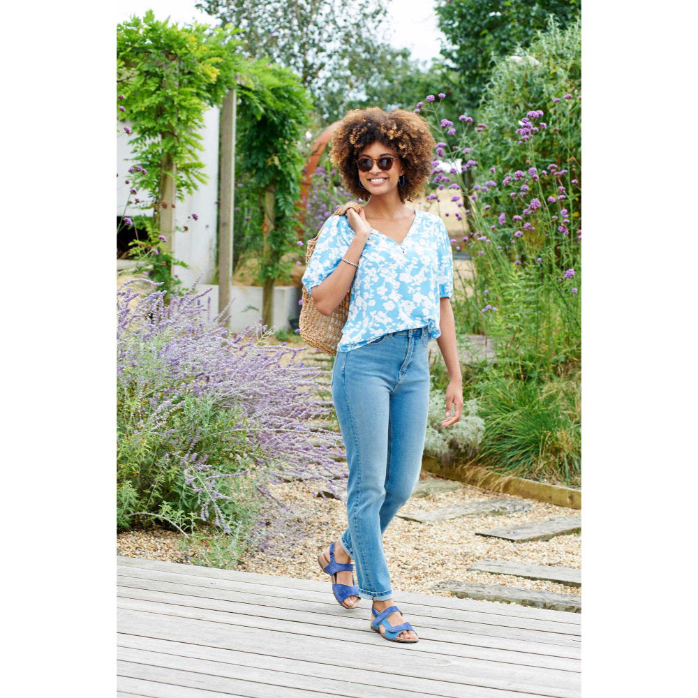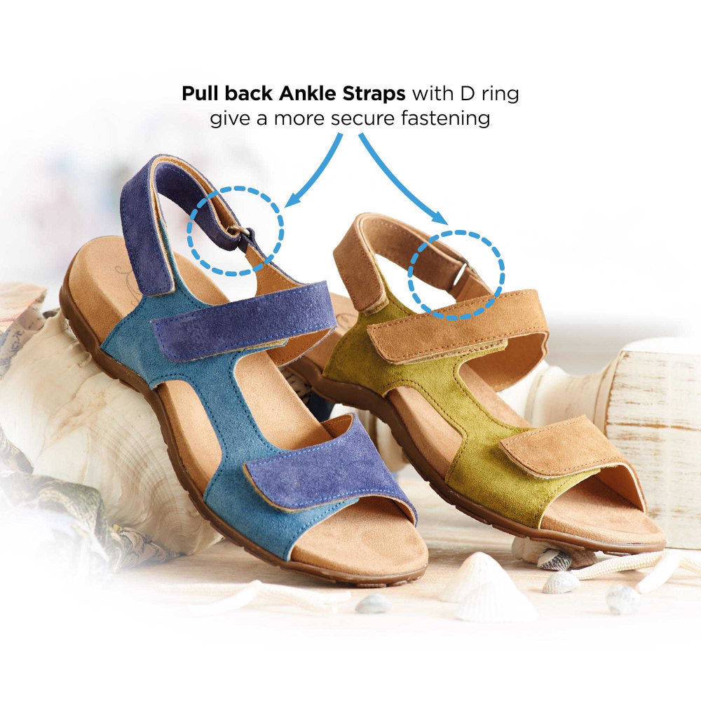 The DB Shoes Eucalyptus 75316 Sandals 2V feature a timeless design crafted from soft suede and textile. With adjustable straps at the ankle and front, these sandals offer a customizable fit for your foot. Fashioned for easy access and enhanced flexibility, these ladies' casual sandals are a versatile option for any wardrobe.