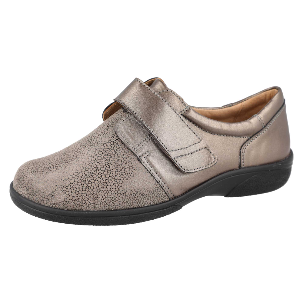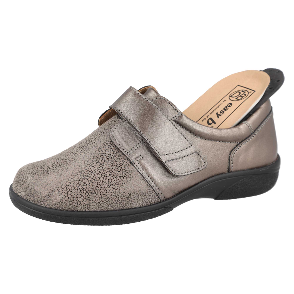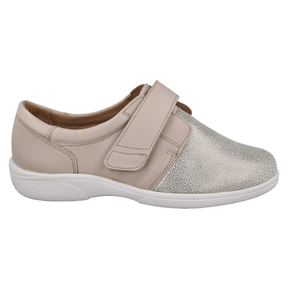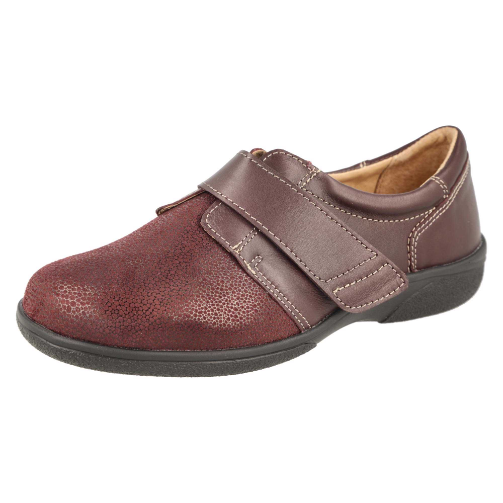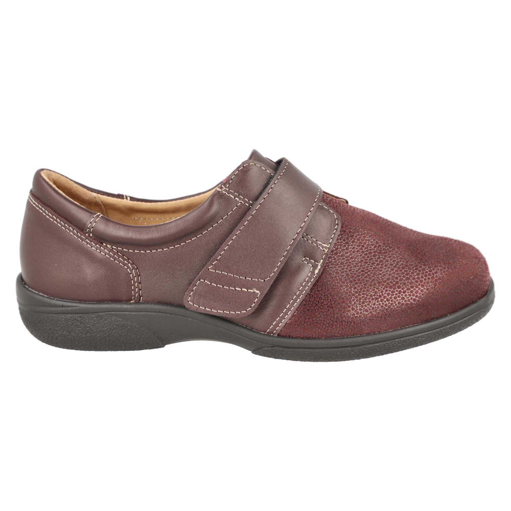 Easy to wear leather style with stretch smooth toebox and touch fastening strap, this incredibly comfortable shoe opens up for easy foot entry.