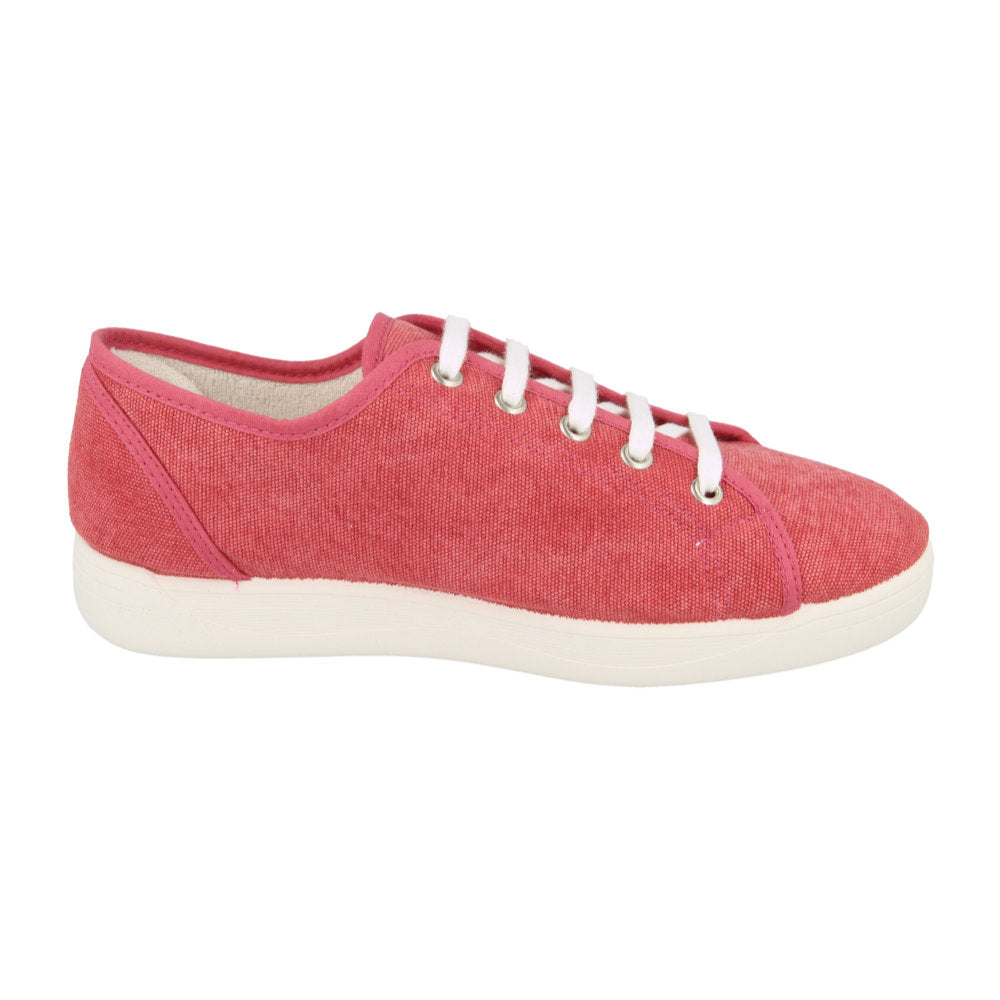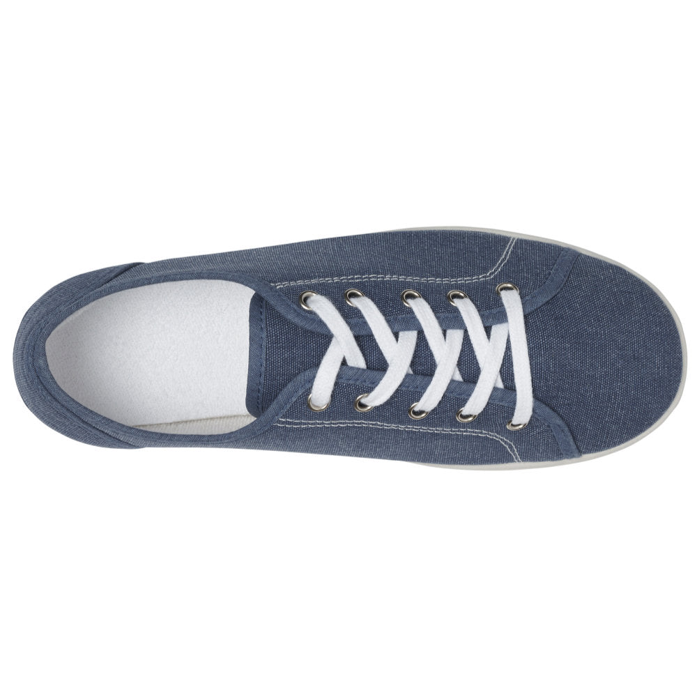 Elevate your summer fashion with our stylish washed-down denim pumps featuring a newly designed 'bumper' sole. Our ladies' canvas shoes with bumper sole provide improved fit and adjustment for higher instep.